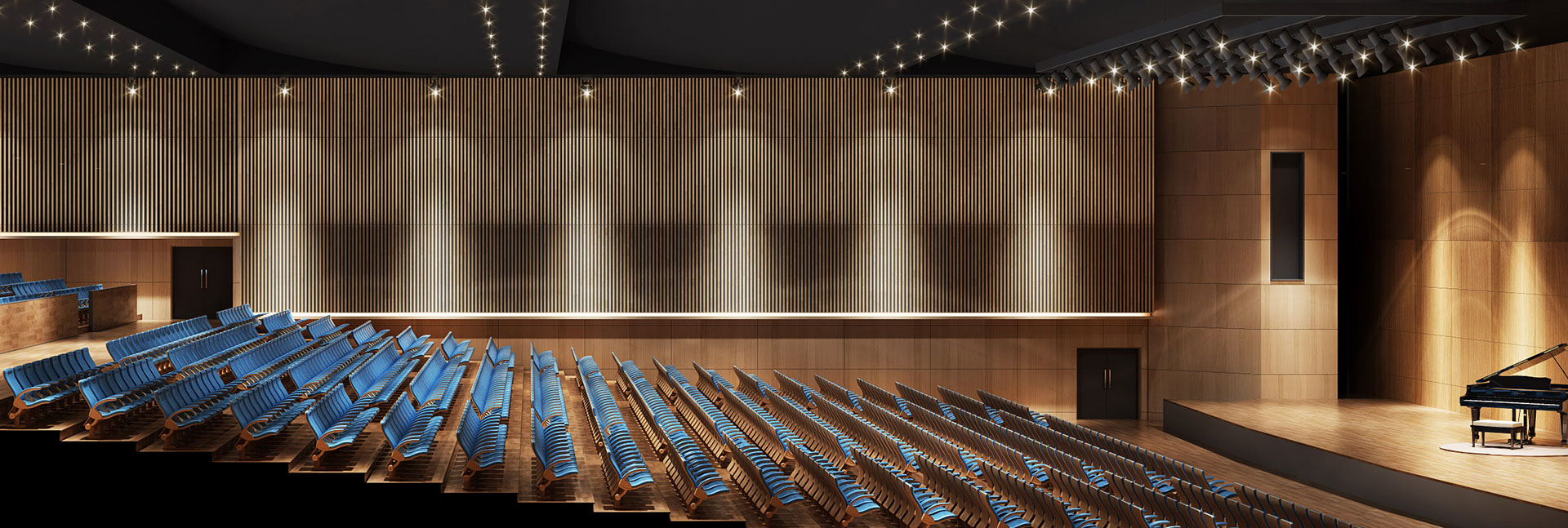 演艺建筑的声学设计涉及结构,体形设计,音质设计与隔声等。对于自然声演出的演艺建筑,声学设计主要以建筑声学为主,如自然声演出的音乐厅。