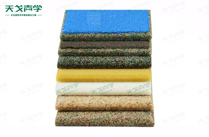 微粒吸音板又叫陶晶砂吸音板是由精选的天然的砂粒,通过胶凝材料聚合起来形成的特定目数的硬质穿孔微粒吸声板,可根据多孔吸音材料及微孔共振吸声机理,通过调整孔隙大小、板材厚度及板后空腔大小,实现其频率特性可调的功能,满足不同频段的吸声设计要求。