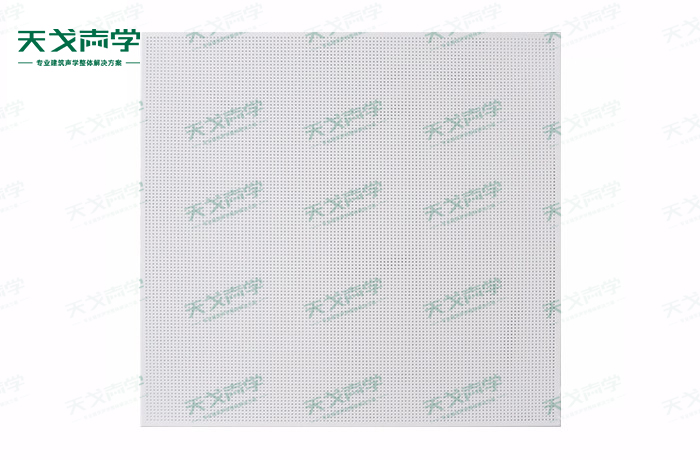天戈铝穿孔吸音板饰面颜色及材料选择性广,孔径、孔距可根据客户要求调整,能很好地满足客户多样化的声学及装饰需求。穿孔吸音板对吸声频谱选择性较强,对中低频有很好的吸声性能。如在吸声结构后空腔上填入适量的吸声棉可提高中、高频吸声效果。