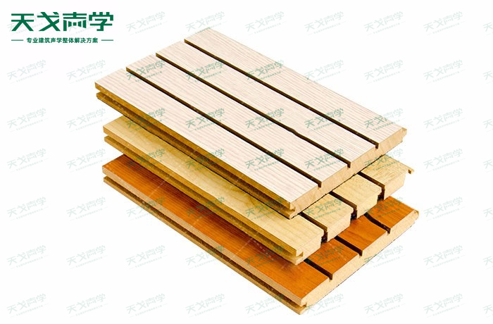 天戈环保槽木吸音材料是一种在密度板的正面开槽、背面穿孔的狭缝共振吸音材料。槽木吸音板对吸声频谱选择性很强,对中低频有很好的吸声性能。若在吸声结构后空腔填入适量的吸声棉可提高中、高频吸声效果,标准化模块设计,采用插槽、龙骨结构,安装简易,常用于墙面或天花装饰。