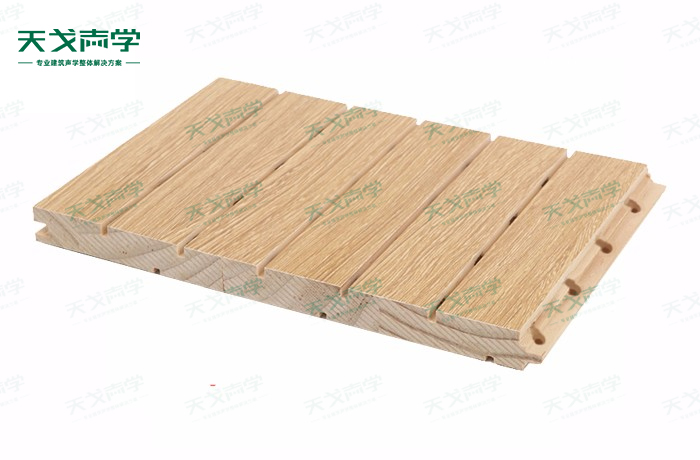 天戈会议厅槽木吸音板是一种在密度板的正面开槽、背面穿孔的狭缝共振吸音材料。槽木吸音板对吸声频谱选择性很强,对中低频有很好的吸声性能。若在吸声结构后空腔填入适量的吸声棉可提高中、高频吸声效果,标准化模块设计,采用插槽、龙骨结构,安装简易,常用于墙面或天花装饰。