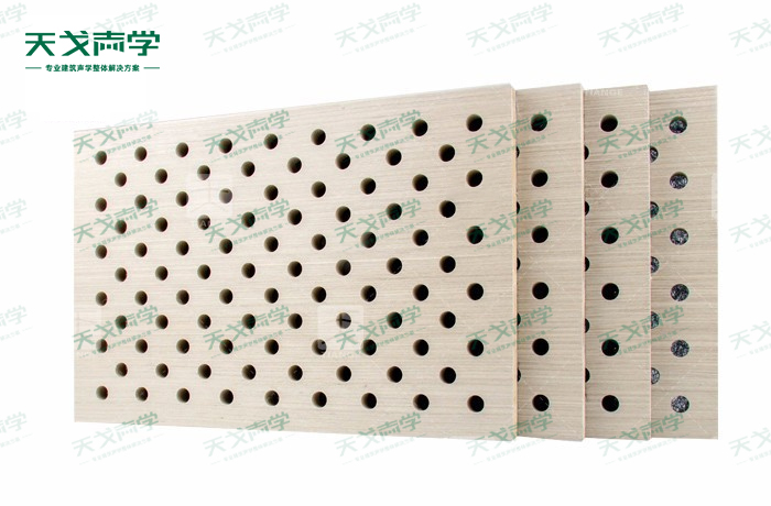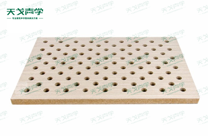 天戈木纹穿孔吸音板饰面颜色及材料选择性广,孔径、孔距可根据客户要求调整,能很好地满足客户多样化的声学及装饰需求。孔木吸音板对吸声频谱选择性较强,对中低频有很好的吸声性能。如在吸声结构后空腔上填入适量的吸声棉可提高中、高频吸声效果。