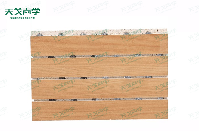 天戈防火玻镁吸音板是一种在密度板的正面开槽、背面穿孔的狭缝共振吸音材料。玻镁吸音板对吸声频谱选择性很强,对中低频有很好的吸声性能。若在吸声结构后空腔填入适量的吸声棉可提高中、高频吸声效果,标准化模块设计,采用插槽、龙骨结构,安装简易,常用于墙面或天花装饰。