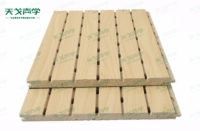 天戈白色玻镁吸音板是一种在密度板的正面开槽、背面穿孔的狭缝共振吸音材料。玻镁吸音板对吸声频谱选择性很强,对中低频有很好的吸声性能。若在吸声结构后空腔填入适量的吸声棉可提高中、高频吸声效果,标准化模块设计,采用插槽、龙骨结构,安装简易,常用于墙面或天花装饰。