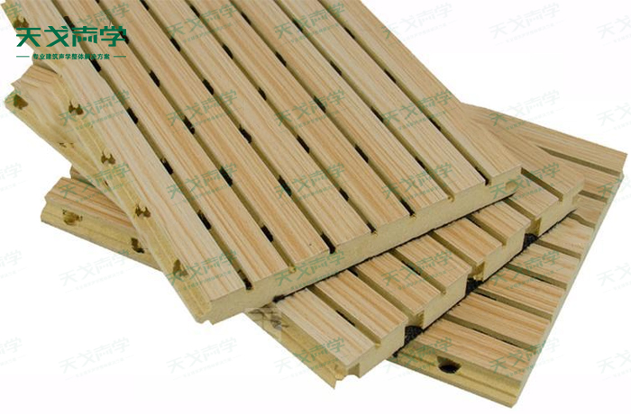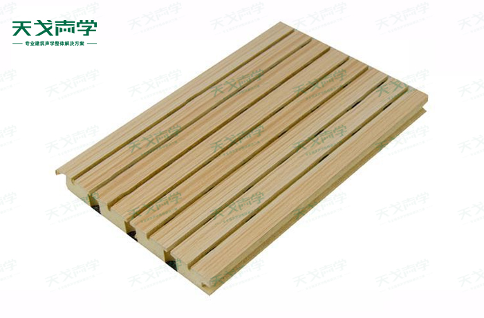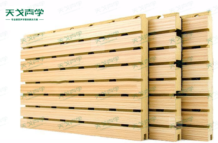 天戈木质条形吸音板是一种在密度板的正面开槽、背面穿孔的狭缝共振吸音材料。槽木吸音板对吸声频谱选择性很强,对中低频有很好的吸声性能。若在吸声结构后空腔填入适量的吸声棉可提高中、高频吸声效果,标准化模块设计,采用插槽、龙骨结构,安装简易,常用于墙面或天花装饰。