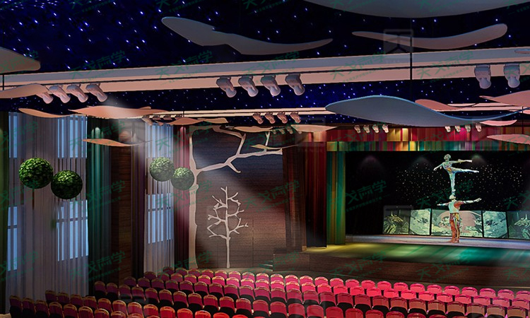 一个剧场的声学设计主要包括对噪声的处理,实现声均匀度,解决聚焦、共振反馈等问题,而采取合适的吸音材料恰恰对实现剧场噪音处理问题有着直接的推动作用。经过安装大规格吸音软包跟槽木吸音板后,现场的听音效果满足剧场声学设计的标准。