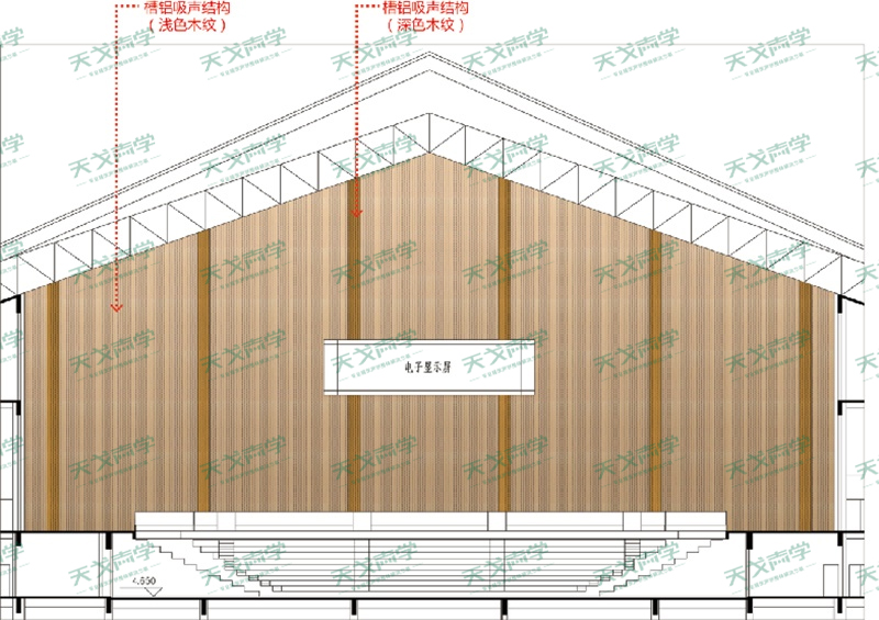体育馆墙面声学材料布置示意图