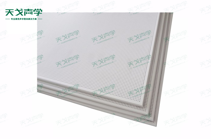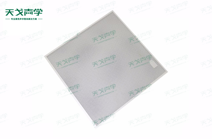 天戈铝穿孔吸音板饰面颜色及材料选择性广,孔径、孔距可根据客户要求调整,能很好地满足客户多样化的声学及装饰需求。穿孔吸音板对吸声频谱选择性较强,对中低频有很好的吸声性能。如在吸声结构后空腔上填入适量的吸声棉可提高中、高频吸声效果。