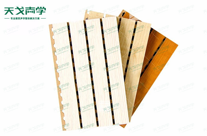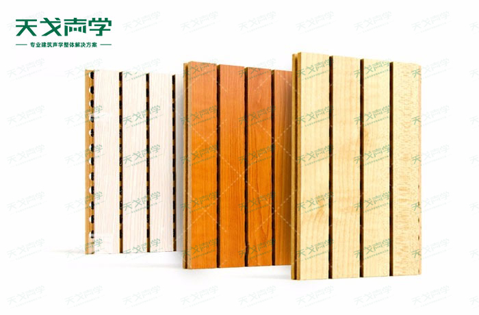 天戈环保槽木吸音材料是一种在密度板的正面开槽、背面穿孔的狭缝共振吸音材料。槽木吸音板对吸声频谱选择性很强,对中低频有很好的吸声性能。若在吸声结构后空腔填入适量的吸声棉可提高中、高频吸声效果,标准化模块设计,采用插槽、龙骨结构,安装简易,常用于墙面或天花装饰。