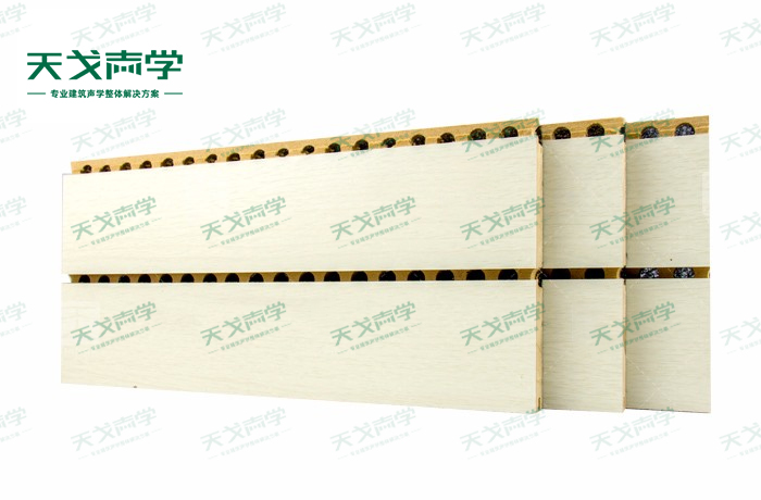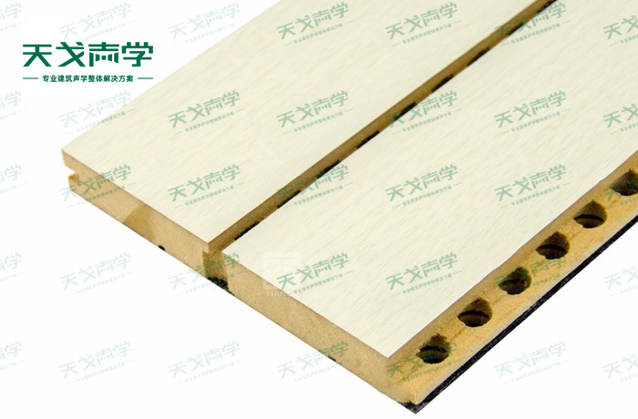 天戈报告厅槽木吸音板是一种在密度板的正面开槽、背面穿孔的狭缝共振吸音材料。报告厅槽木吸音板对吸声频谱选择性很强,对中低频有很好的吸声性能。若在吸声结构后空腔填入适量的吸声棉可提高中、高频吸声效果,标准化模块设计,采用插槽、龙骨结构,安装简易,常用于墙面或天花装饰。