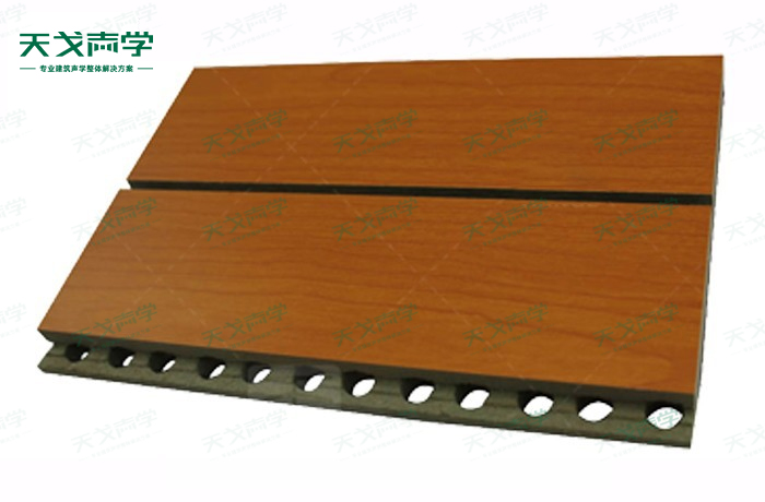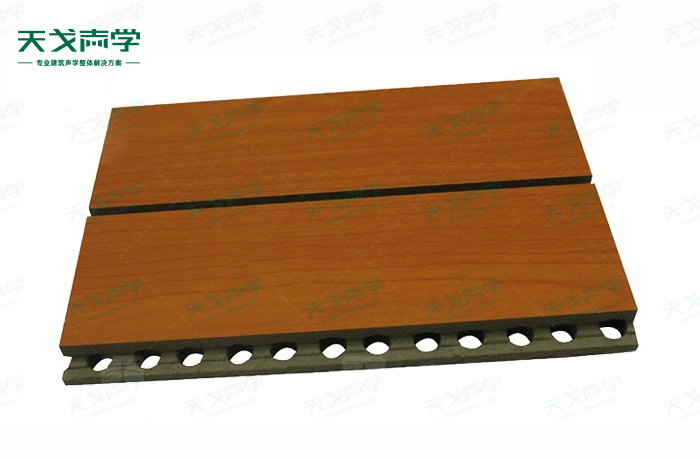 天戈会议中心槽木吸音板是一种在密度板的正面开槽、背面穿孔的狭缝共振吸音材料。槽木吸音板对吸声频谱选择性很强,对中低频有很好的吸声性能。若在吸声结构后空腔填入适量的吸声棉可提高中、高频吸声效果,标准化模块设计,采用插槽、龙骨结构,安装简易,可用于会议中心墙面或天花装饰。
