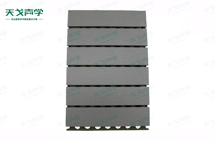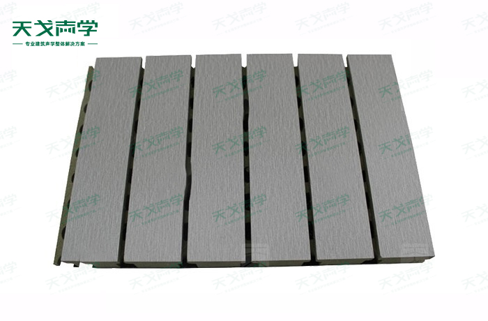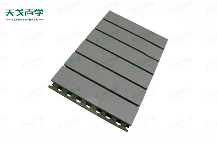 天戈篮球馆槽木吸音板是一种在密度板的正面开槽、背面穿孔的狭缝共振吸音材料。槽木吸音板对吸声频谱选择性很强,对中低频有很好的吸声性能。若在吸声结构后空腔填入适量的吸声棉可提高中、高频吸声效果,标准化模块设计,采用插槽、龙骨结构,安装简易,可用于篮球馆墙面或天花装饰。