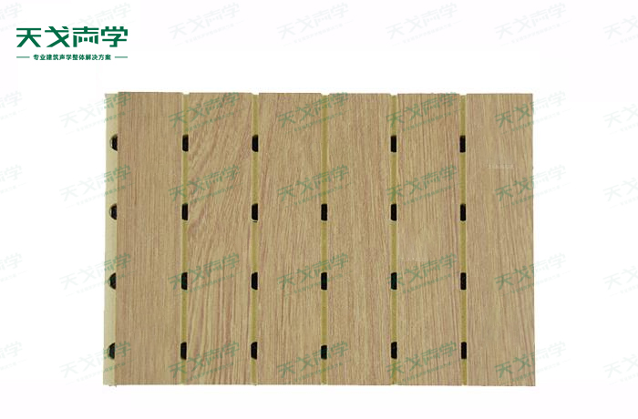 天戈木塑吸音板(WCP槽孔吸声板)采用生态木的加工工艺,是一种在基材上正面开槽、背面穿孔的狭缝共振吸音材料。使得产品不怕水、不吸水、不龟裂、不变形,且具有传统装饰材料的隔热、防火、防尘、质轻、环保,吸声效果佳、施工方便等特点。若在吸声结构后空腔填入适量的吸音棉可提高中、高频吸声效果,标准化模块设计,采用插槽、龙骨结构,安装简易,常用于墙面或天花装饰。