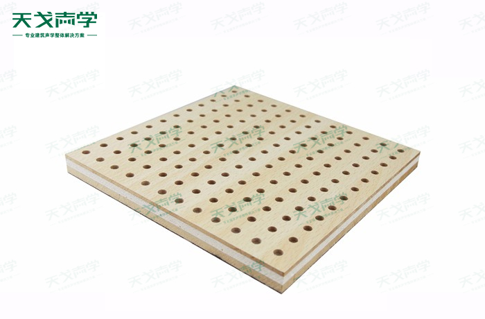天戈穿孔吸音复合板饰面颜色及材料选择性广,孔径、孔距可根据客户要求调整,能很好地满足客户多样化的声学及装饰需求。孔木吸音板对吸声频谱选择性较强,对中低频有很好的吸声性能。如在吸声结构后空腔上填入适量的吸声棉可提高中、高频吸声效果。
