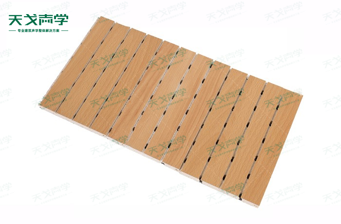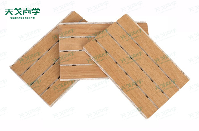 天戈防火玻镁吸音板是一种在密度板的正面开槽、背面穿孔的狭缝共振吸音材料。玻镁吸音板对吸声频谱选择性很强,对中低频有很好的吸声性能。若在吸声结构后空腔填入适量的吸声棉可提高中、高频吸声效果,标准化模块设计,采用插槽、龙骨结构,安装简易,常用于墙面或天花装饰。