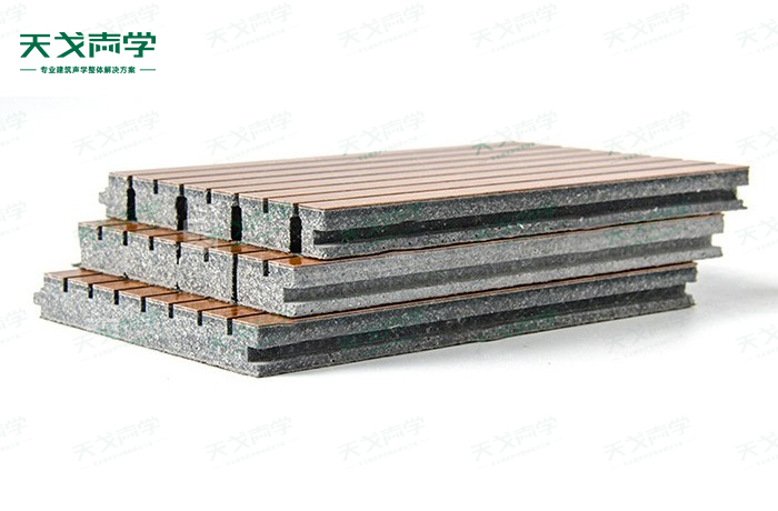 陶铝吸音板实现吸声的技术原理是:一是在材料本身内形成多孔结构,达到一定的吸声效果,其二是在成品板上通过开槽、钻孔形成穿孔板共振结构,达到吸声效果。并配合吸声无纺布进一步提升吸音效果。