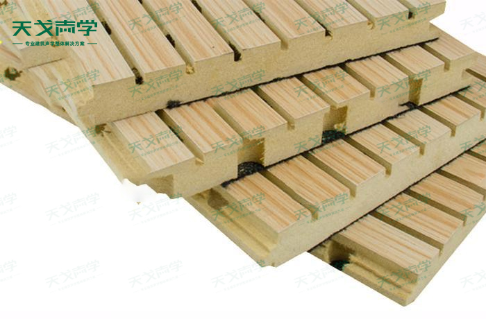天戈木质条形吸音板是一种在密度板的正面开槽、背面穿孔的狭缝共振吸音材料。槽木吸音板对吸声频谱选择性很强,对中低频有很好的吸声性能。若在吸声结构后空腔填入适量的吸声棉可提高中、高频吸声效果,标准化模块设计,采用插槽、龙骨结构,安装简易,常用于墙面或天花装饰。