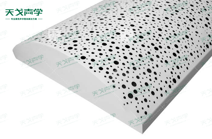 大型会议厅天花空间吸声体是一种悬挂在顶棚具有高效吸收性能的吸声材料。大型会议厅天花空间吸声体一般水平或者垂直吊挂。大型会议厅天花空间吸声体面积占顶棚总面积的30%-45% 时,其材料的吸声性能是其他声学材料吸声性能的2倍。