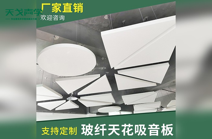 玻纤天花吸音板是一种干式合成高密度玻璃纤维棉板,表面复合装饰毡制成,背面复合玻纤素毡,四边做封边处理。玻纤天花吸音板四边平直,成直角状,安装后表面平行于龙骨面,稳重大方。