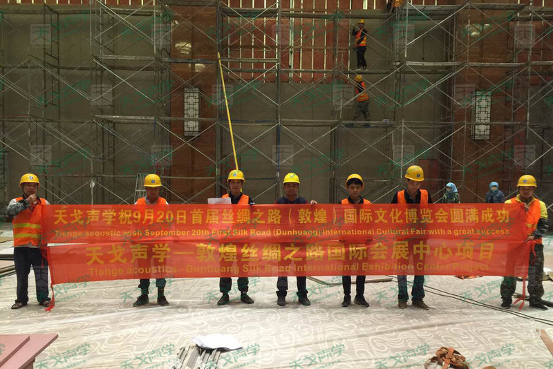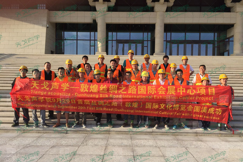 天戈声学承担起国际会议厅、宴会厅这两个项目,3000平方米声学材料,2天生产、4天运输到敦煌、两个厅4天施工完,一共十天时间,天戈声学创造的声学界的奇迹,挑战成功!