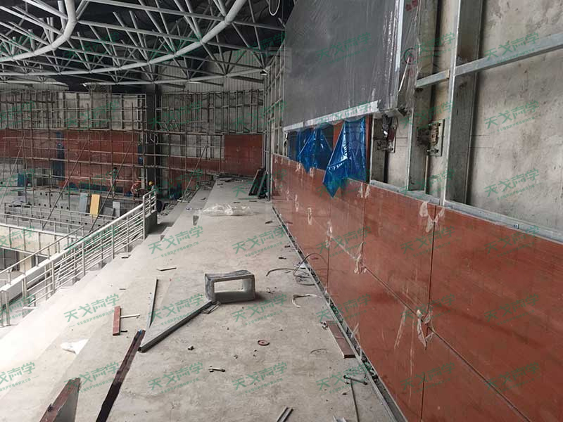 天戈声学根据《体育馆建筑设计规范》为其设计了合理的混响时间,并且在比赛大厅相应的位置上安装吸音材料以及针对存在问题相应采取消声、降噪和减震的措施;在材料的选择上也是严格按照国家规定的环保要求,相对应采用不燃烧、难燃烧的材料,例如我们的明星产品--穿孔吸音板。天戈体育馆穿孔吸音板饰面颜色及材料选择性广,孔径、孔距可根据客户要求调整,能很好地满足客户多样化的声学及装饰需求。穿孔吸音板对吸声频谱选择性较强,对中低频有很好的吸声性能。如在吸声结构后空腔上填入适量的吸声棉可提高中、高频吸声效果,是理想的体育馆吸音材料。