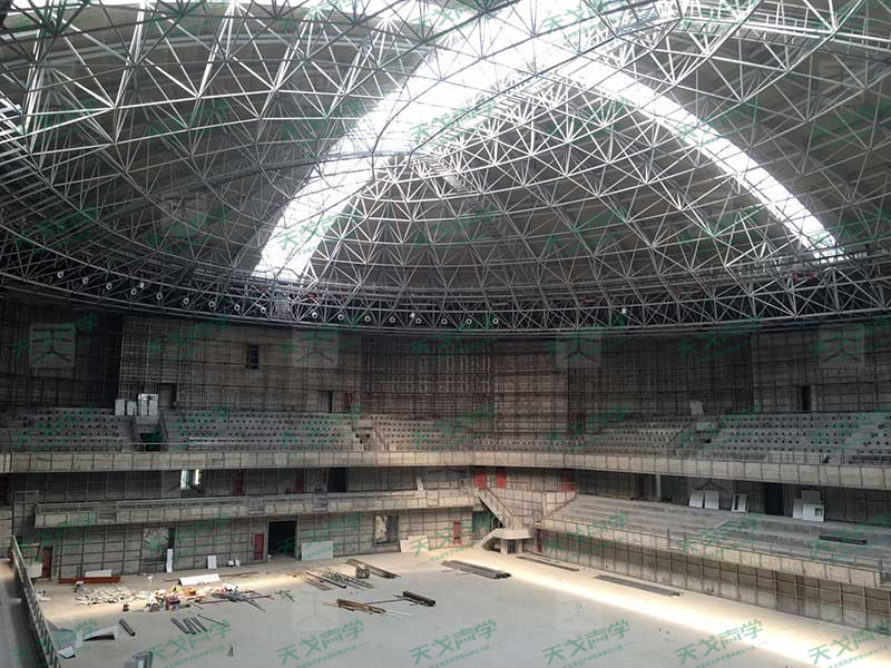 安庆怀宁县全民健身中心体育馆项目位于安徽安庆怀宁新县城南新区,建筑面积达18000平方米,该体育馆设有单层地下室,占地面积为99,900平方米,共设约5,000个座位。体育馆项目组对该项目的声学设计非常重视,最终选择把该项目的声学设计交由我们佛山天戈科技有限公司负责,而我司也不负众望,交出了人满意的成绩。
