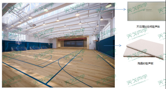 经过声学处理后小学部体育馆中频500-1000Hz达到了1.33-1.39s,满足设计标准,场所内具有适宜的语言清晰度,满足使用要求。